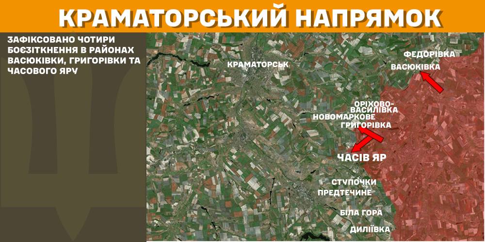 На Краматорському напрямку зафіксовано чотири боєзіткнення в районах Васюківки, Григорівки та Часового Яру.