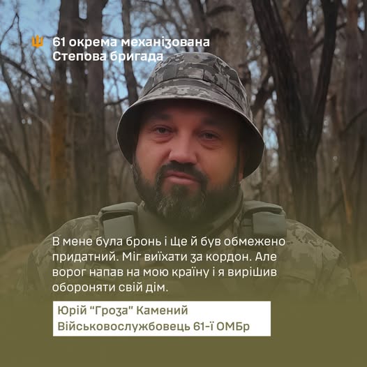 «Повернувся, бо маю велику відповідальність перед солдатами, за них треба дбати. Не можу кинути своїх, вони всі для мене — герої. Вони пішли на війну, бо розуміють: якщо не боронитимуть рідну землю — ворог буде в їхніх будинках і буде знущатиметься з їх близьких», — говорить Юрій.