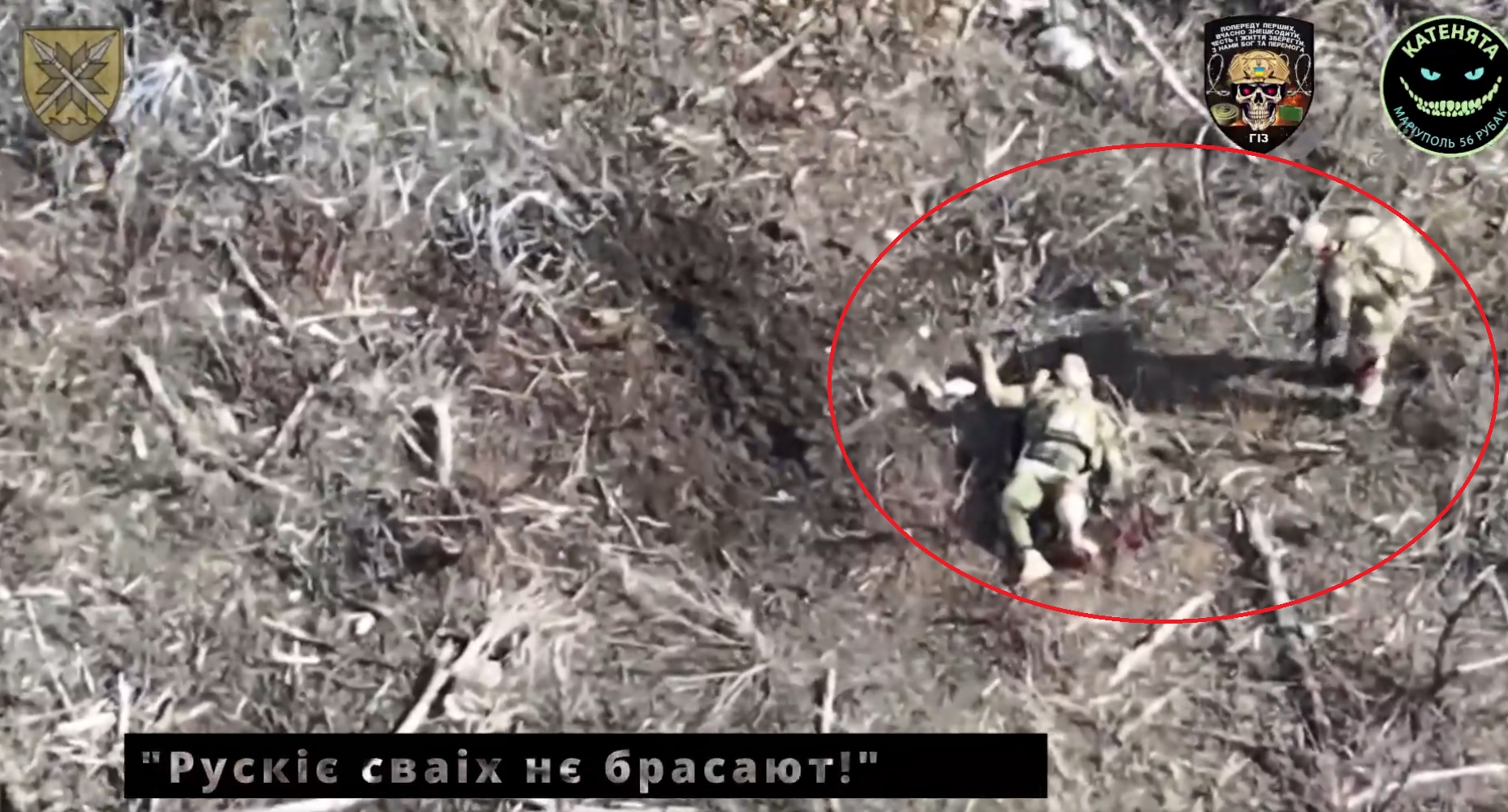 «Русскіє сваіх нє брасают», — іронічно зауважили українські воїни, коментуючи оприлюднені кадри.