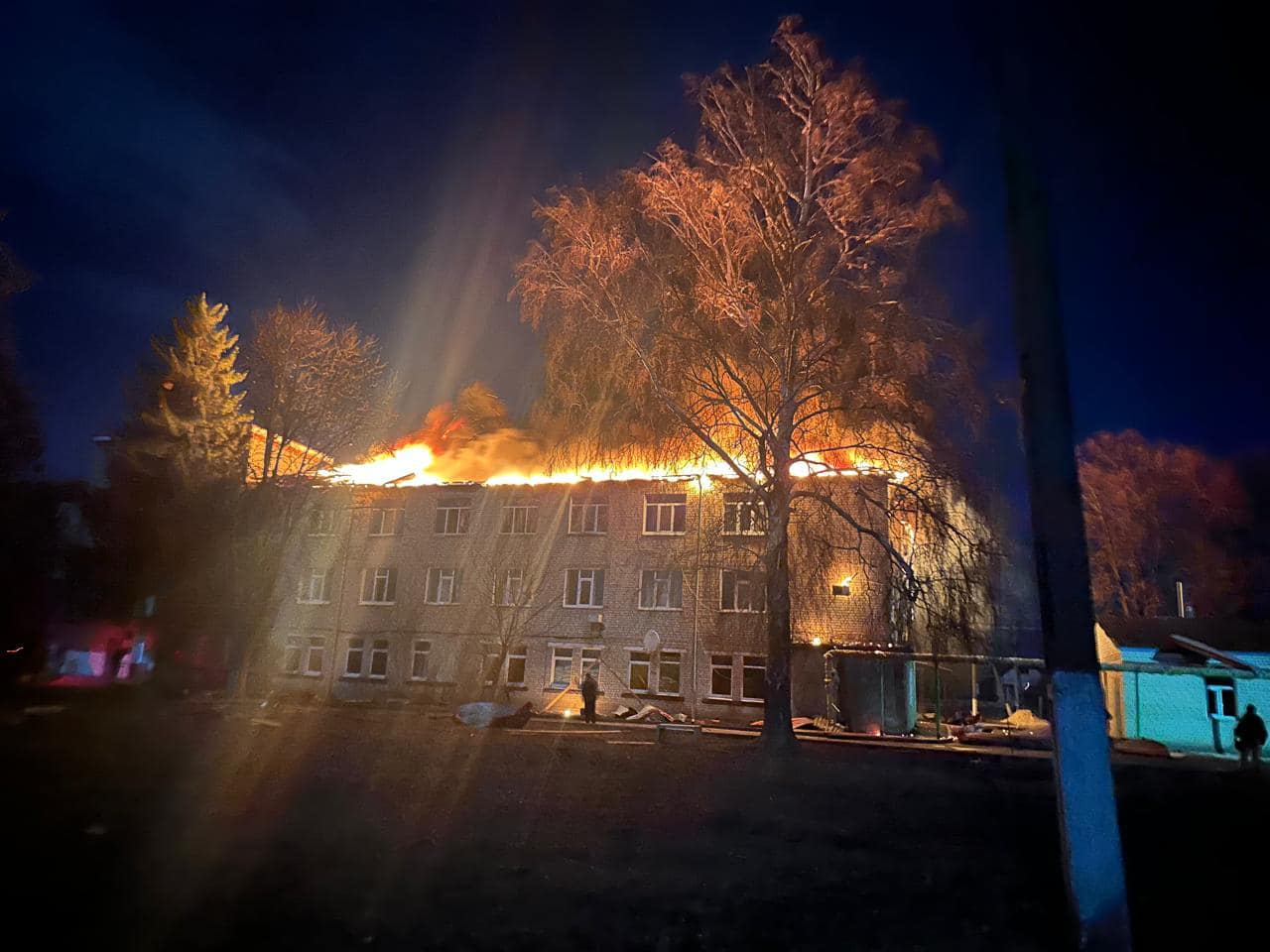 «Близько півночі ворог вдарив по лікарні в Золочеві. Внаслідок влучання БПЛА загорівся дах. Через 40 хвилин ворог завдав повторного удару двома БПЛА», — розповів Олег Синєгубов.