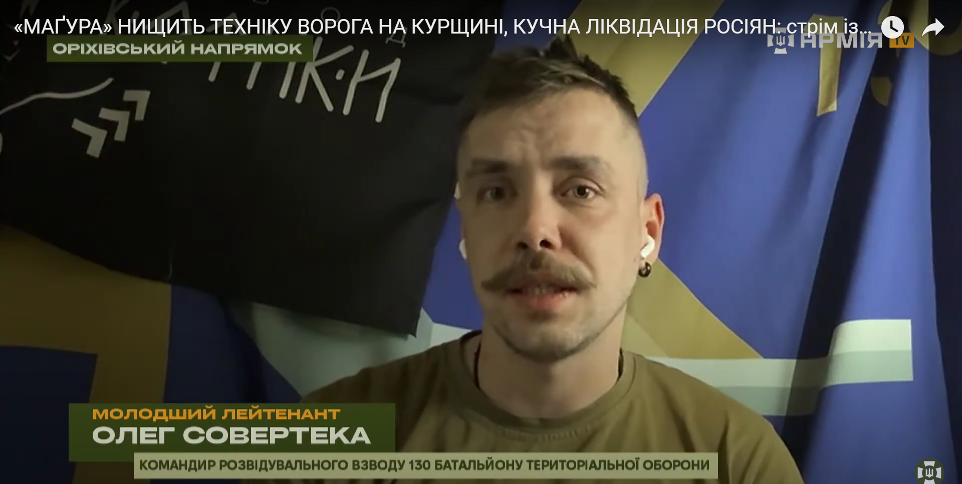 Про це на стрімі АрміяTV розповів командир розвідувального взводу 130 окремого батальйону 241 окремої бригади територіальної оборони молодший лейтенант Олег Совертека.