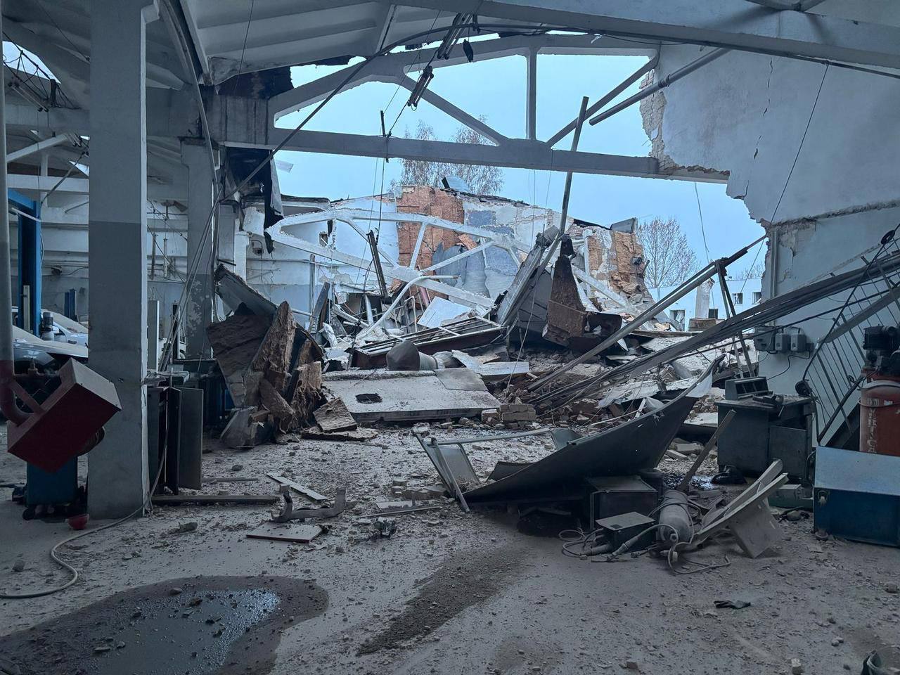У Броварському районі зазнали руйнувань дві будівлі підприємства з ремонту авто. Пошкоджено 7 автомобілів та 2 навантажувачі. Також пошкоджені вікна та фасад автозаправної станції.