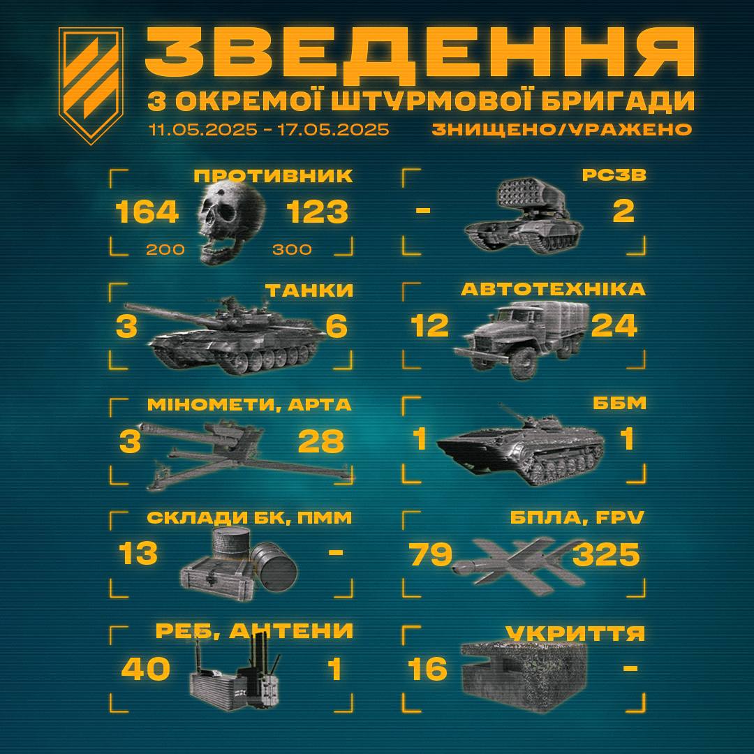 На Харківському напрямку Третя штурмова бригада знищила чергову партію російських «асвабадітєлєй» разом із технікою. Головна трофейна позиція — знищена важка вогнеметна система ТОС-1А «Солнцепьок», символ кремлівського терору, який тепер залишився лише на кадрах дронів, що фіксували її смерть.