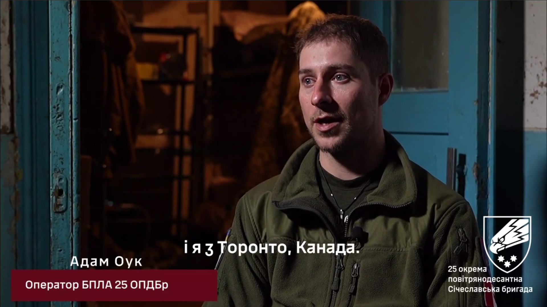 Уродженець Торонто Адам Оук зараз служить дронарем у 25-й повітрянодесантній Січеславській бригаді ДШВ ЗСУ.
