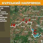 На Курському напрямку відбулося 19 боєзіткнень. Ворог здійснив 215 артилерійських обстрілів, з них шість — із реактивних систем залпового вогню, здійснив 10 авіаційних ударів, скинувши 28 керованих авіаційних бомб.