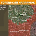 На Торецькому напрямку ворог здійснив 11 атак у районах населених пунктів Торецьк та Диліївка.