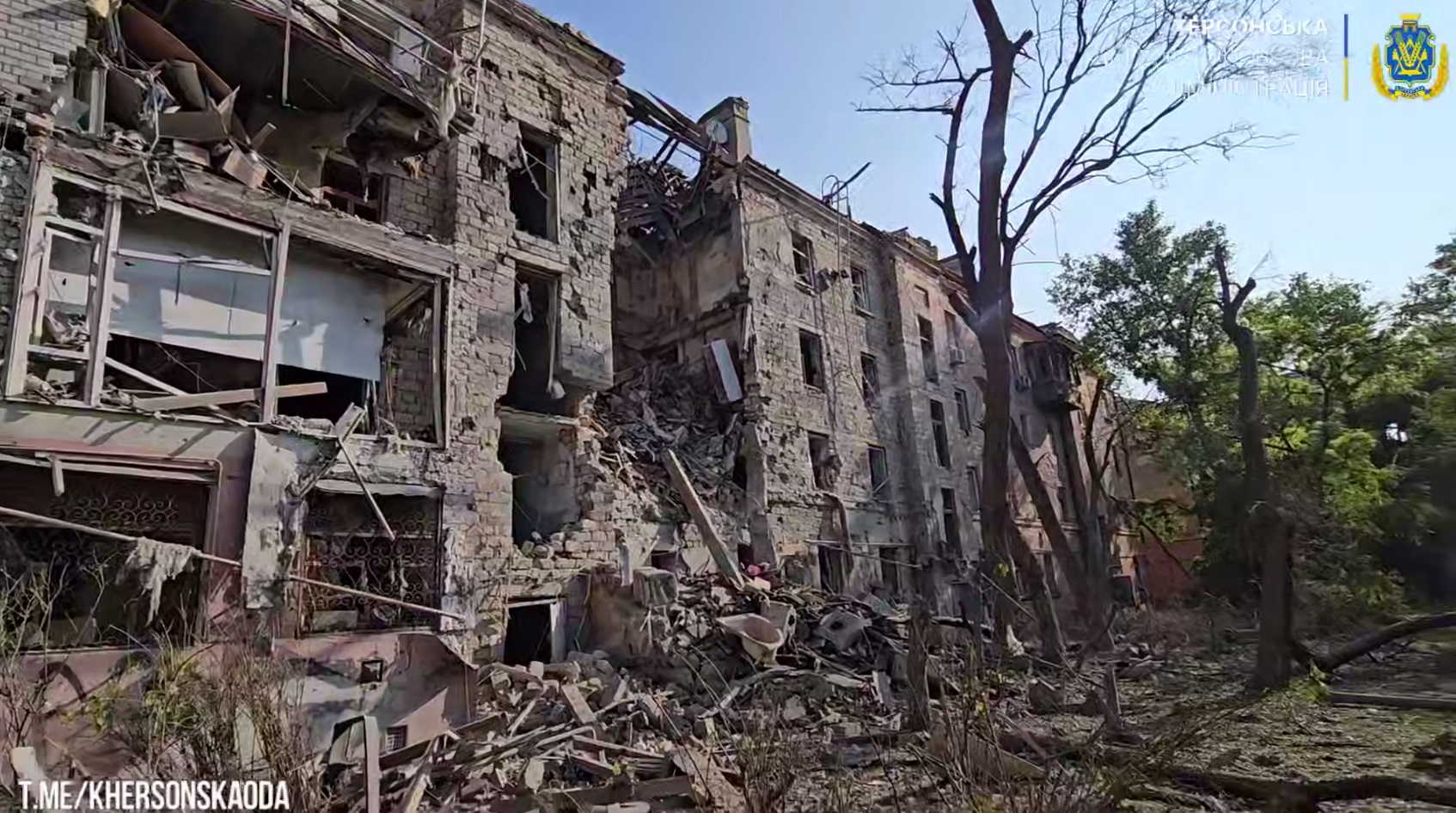 «Через удари ще більших руйнувань зазнала будівля ХОДА, яку росіяни неодноразово атакували до цього. Також зруйновано підʼїзд багатоповерхівки, у навколишніх будинках — вибиті вікна й посічені фасади. На місці розгорнуто оперативний штаб Херсонської ОВА», — йдеться у повідомленні.