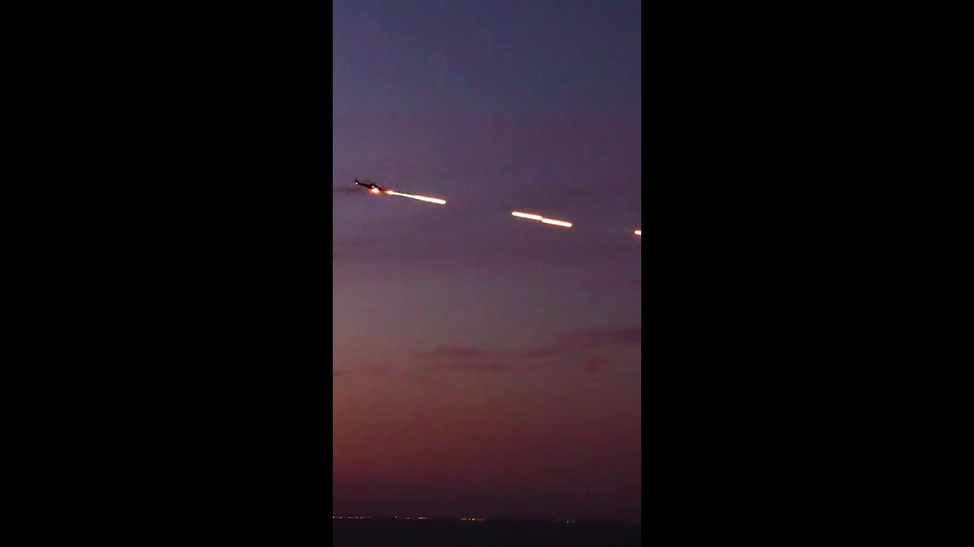 На кадрах видно, як вогонь по російсько-іранськім БПЛА вели, як гелікоптери у небі, так і мобільні вогневі групи з землі.