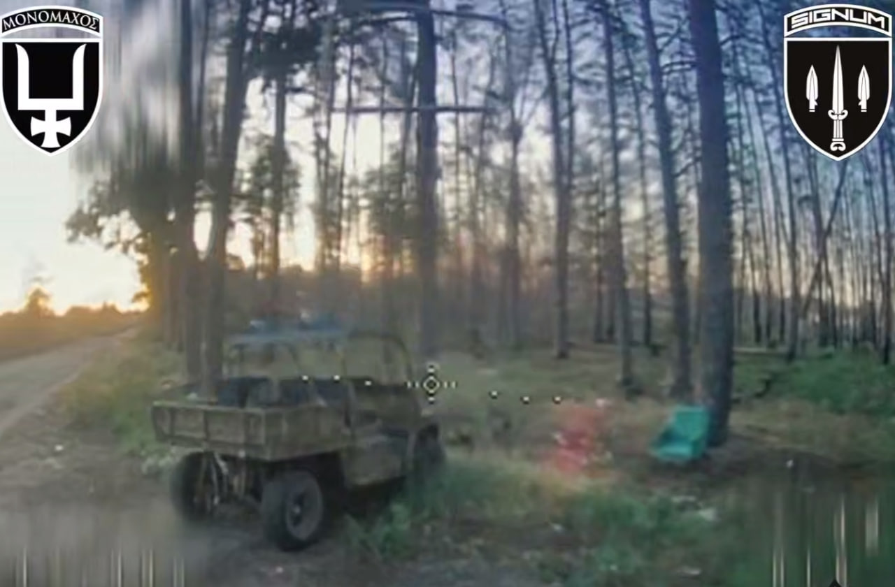 На Лиманському напрямку пілоти батальйону SIGNUM виявили імпровізовану «зону відпочинку» окупантів із зеленим кріслом та бойовим квадроциклом, після чого FPV-дроном «скасували» ворожий відпочинок, знищивши їхній транспорт.