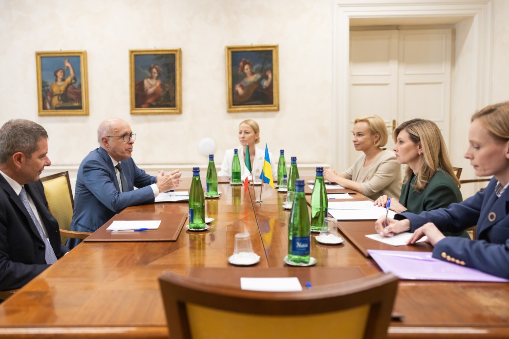 Під час візиту до Італії перша леді України Олена Зеленська провела зустрічі з міжнародними партнерами, присвячені розширенню підтримки українських дітей та молоді.