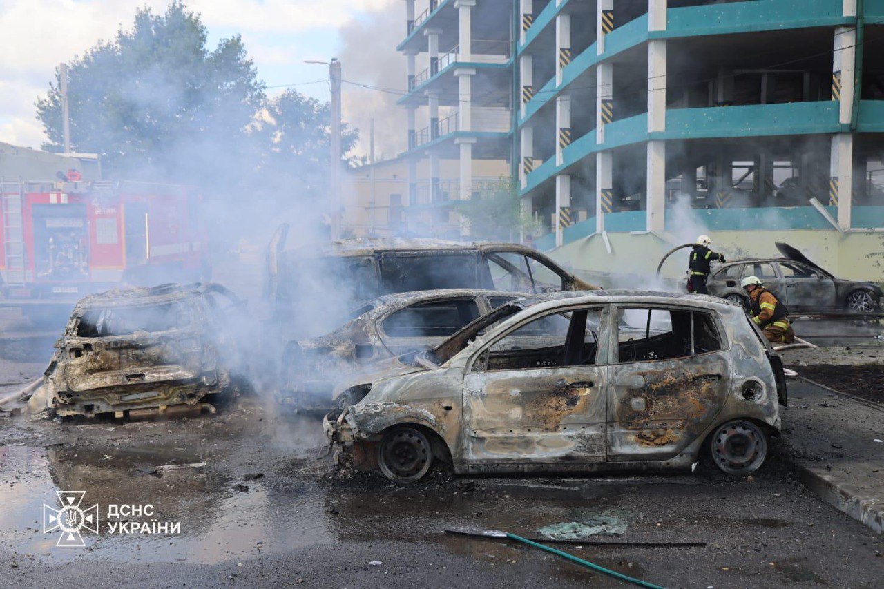 На одній з локацій вибиті шибки у багатоквартирних будинках, локалізовано пожежу семи автомобілів. На іншій – у гаражному кооперативі пошкоджені гаражі та легковики.