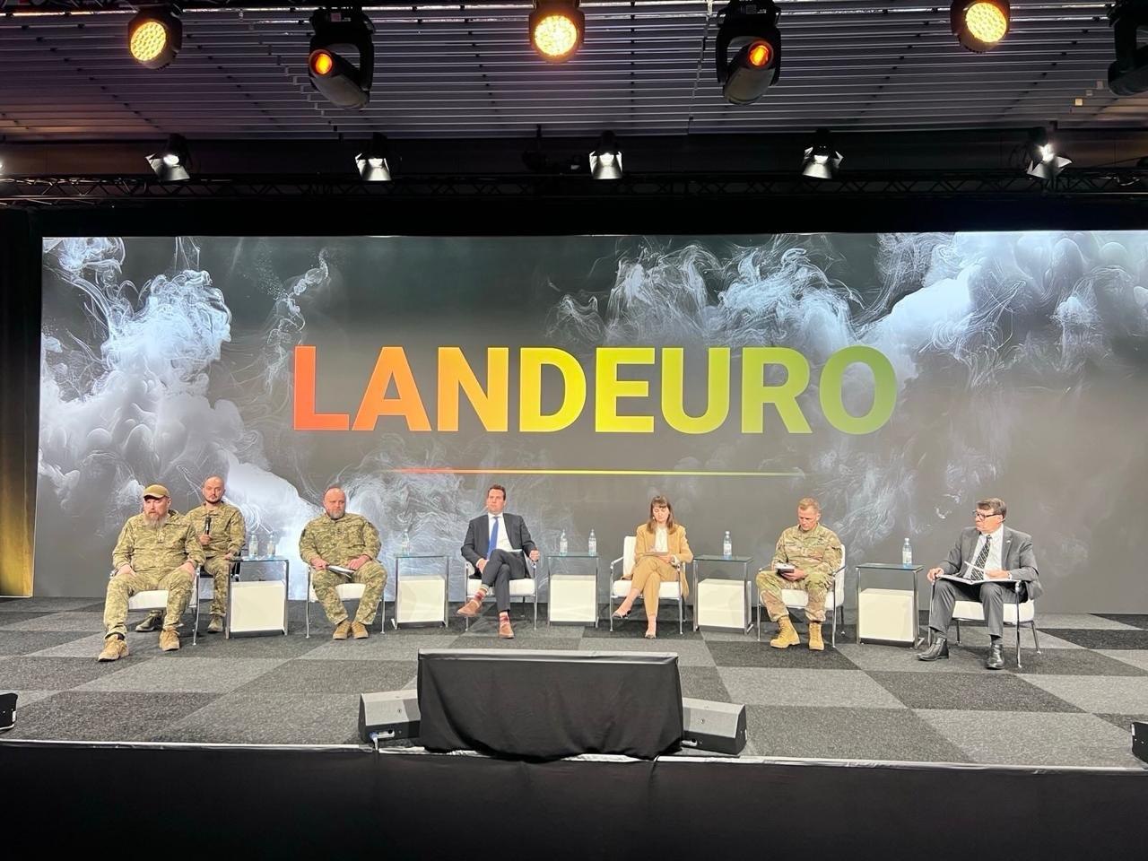 В рамках панельної дискусії LANDEURO, присвяченої «Українським урокам швидкої адаптації» із доповіддю на тему «Розуміння сучасної війни є першим обов’язком тих, хто її веде» виступив голова делегації, заступник начальника Генерального штабу ЗСУ генерал-майор Володимир Горбатюк.