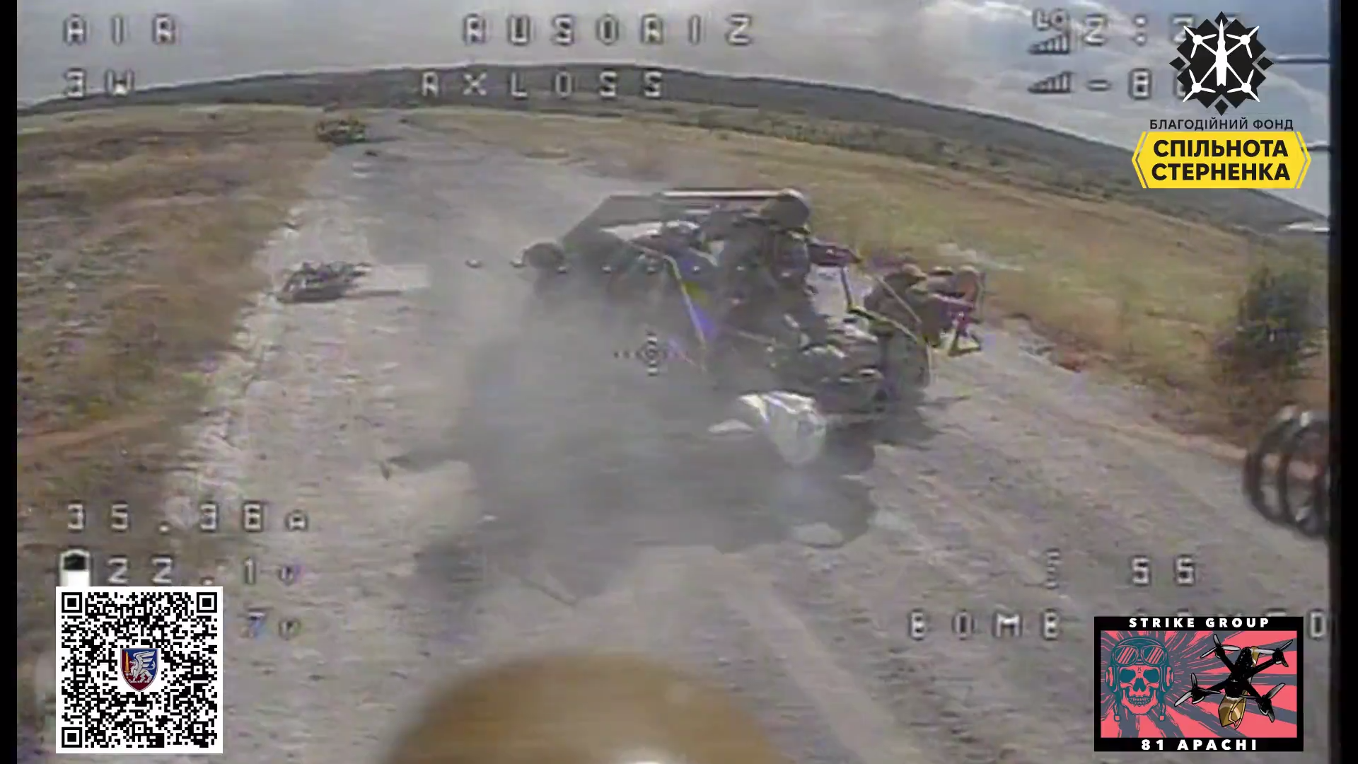 Але щось пішло не так. А точніше — все пішло не так. Бо на маршруті з’явилися Апачі. FPV лягли точно в ціль. Техніка, жива сила — усе перетворено на дим, метал і м’ясо», — прокоментували відео в підрозділі.