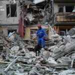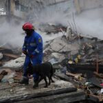 Один з ударів прийшовся по житловій багатоповерхівці: зруйновано цілий під’їзд. Рятувальники розбирають завали, працюють верхолази, інженерна техніка.