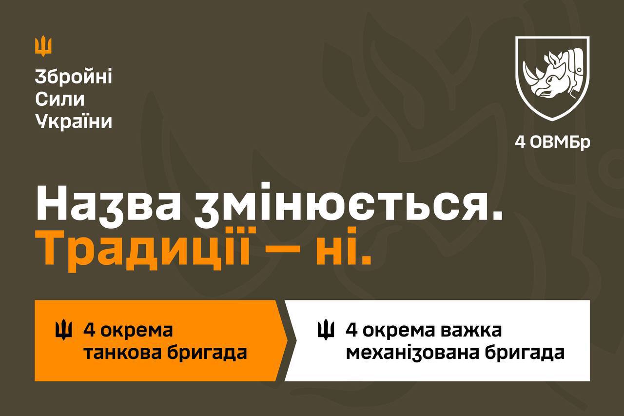 4-та окрема танкова бригада — остання з танкових у складі ЗСУ — переформована у важку механізовану.