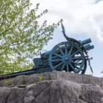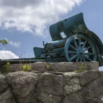 Символічно, що над цим висловом українського політичного та військового лідера височіє легка тридюймова (калібру 76,2 мм) гірська артилерійська гармата зразка 1909 року — саме такі були на озброєнні Окремого кінно-гірського артилерійського дивізіону під командуванням Олекси Алмазова.