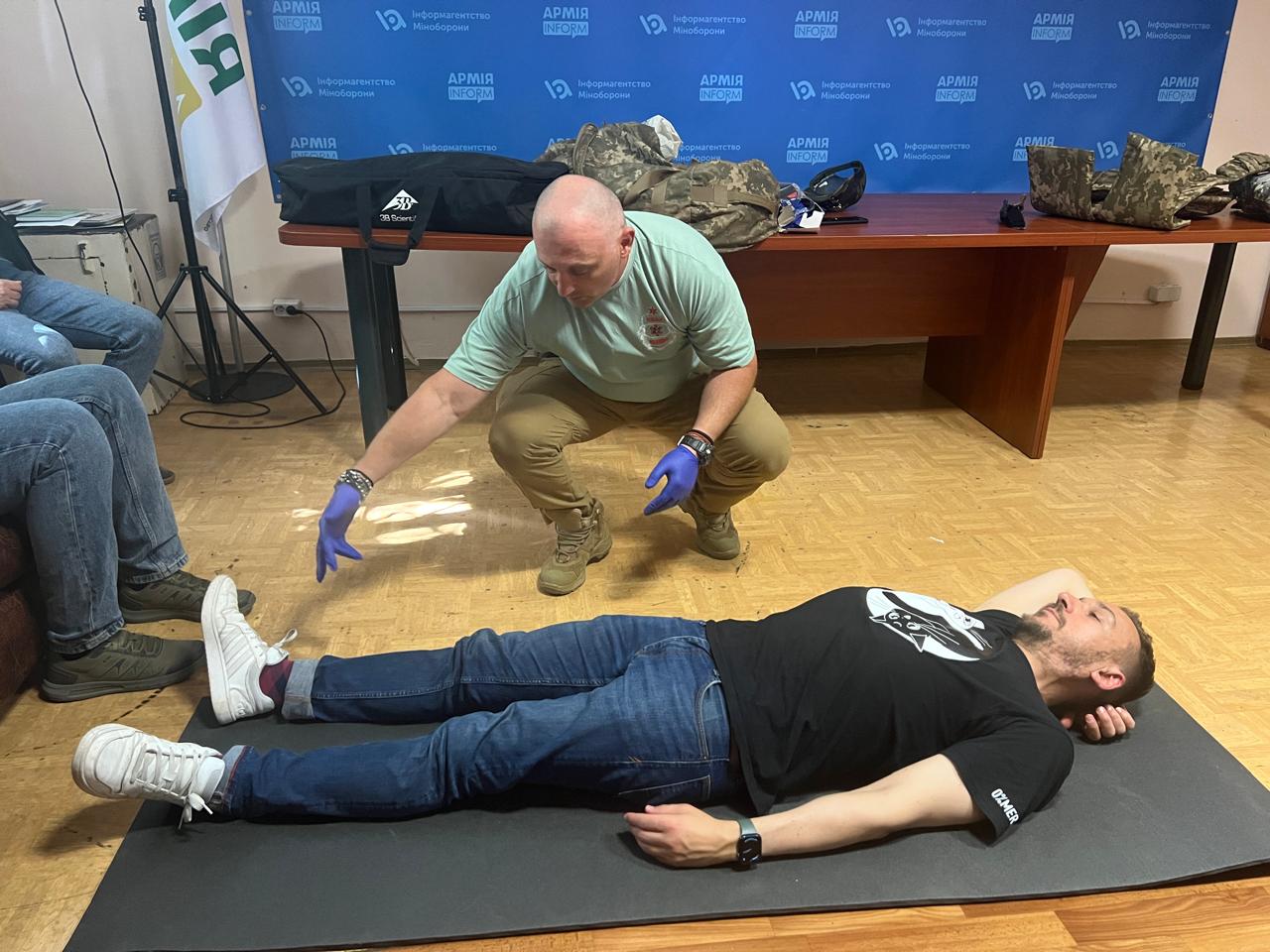 Як він розповів, «військові журналісти, виконуючи бойові завдання на лінії фронту можуть потрапити в ситуацію, коли їм доведеться надавати допомогу пораненим. Згідно з наказом МОУ № 598 від 03.09.2024 „Про затвердження Обсягів надання медичної допомоги на догоспітальному етапі, які надаються під час ведення бойових дій та підготовки сил безпеки і сил оборони за призначенням у тактичних умовах“ військовослужбовці повинні володіти навичками надання домедичної допомоги. Тому в рамках курсу я провів теоретичні та практичні заняття з особовим складом Інформаційного агентства».