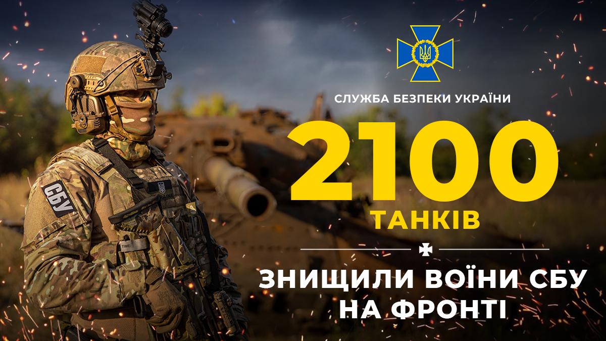 «На рахунку воїнів СБУ — 2100 російських танків. Саме стільки цієї техніки противника з початку повномасштабного вторгнення уразили наші співробітники», — йдеться у повідомленні.