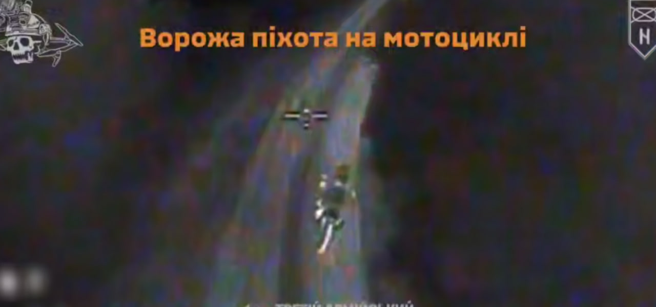 Бійці підрозділу «PNK group» Третьої штурмової бригади продемонстрували майстерність володіння FPV-дронами, наздогнавши на ходу ворожого мотоцикліста та завдавши йому удару «прямо в голову».