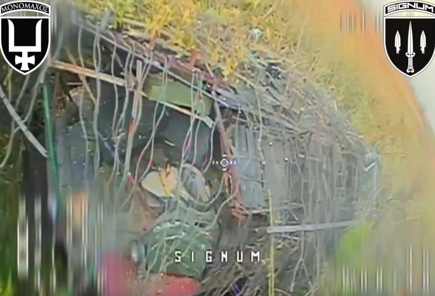 На Сіверському напрямку пілоти батальйону «Signum» у взаємодії з суміжним підрозділом знищили ворожу БМП, яка, після першого влучання, застрягла в болоті, а її екіпаж та піхоту ліквідували.