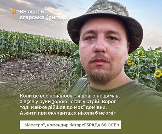 Після деокупації Київщини «Маестро» мобілізувався до ЗСУ. Він брав участь у контрнаступі на Запоріжжі, штурмах на Харківщині, а згодом очолив зенітно-кулеметну батарею на Донеччині. Розвиток технологій привів його на нинішню посаду.
