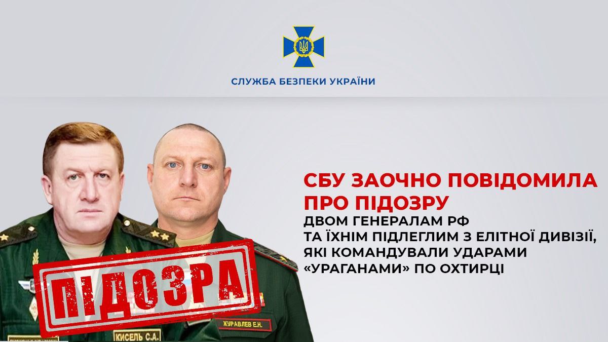 Служба безпеки України заочно повідомила про підозру шістьом високопоставленим офіцерам збройних сил рф — від підполковника до генерал-лейтенанта. За даними слідства, 25 лютого 2022 року вони віддали наказ обстріляти Охтирку з реактивних систем «Град» та «Ураган», що призвело до загибелі дев’яти мирних мешканців, серед яких була дитина.