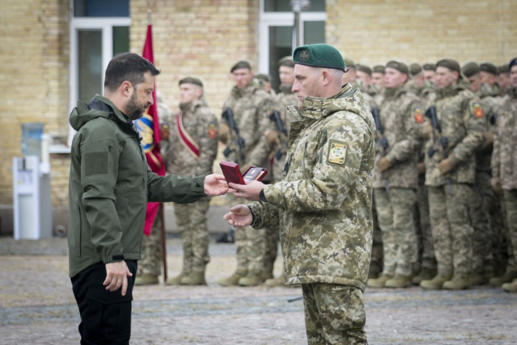 Президент України Володимир Зеленський вручив орден «За мужність» ІІ ступеня старшому сержанту Дмитру Погребаку, снайперу бригади «Помста», який під час запеклого бою, отримавши кульове поранення в ногу, продовжував вести бій та прикривати побратимів.