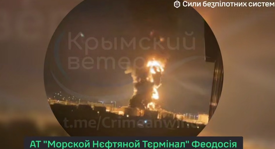 Командувач Сил безпілотних систем ЗСУ Роберт «Мадяр» Бровді показав наслідки атаки на морський нафтовий термінал росіян в окупованій Феодосії.