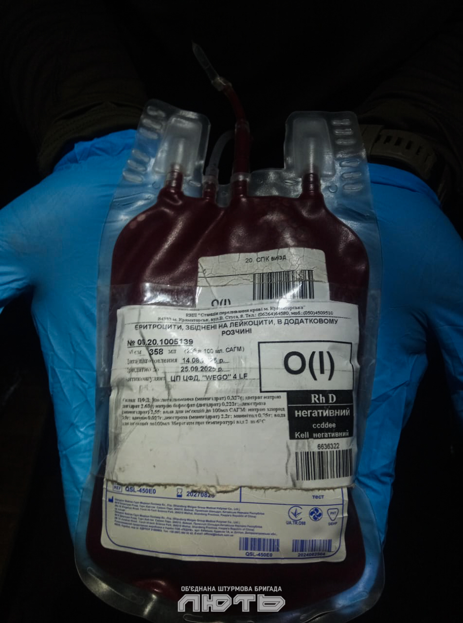 Розуміючи, що зволікати не можна, бойовий медик «Люті» запросив скид донорської крові дроном від побратимів «Азову». За лічені хвилини пакунок доправили до позиції, і медик провів переливання безпосередньо в польових умовах.
