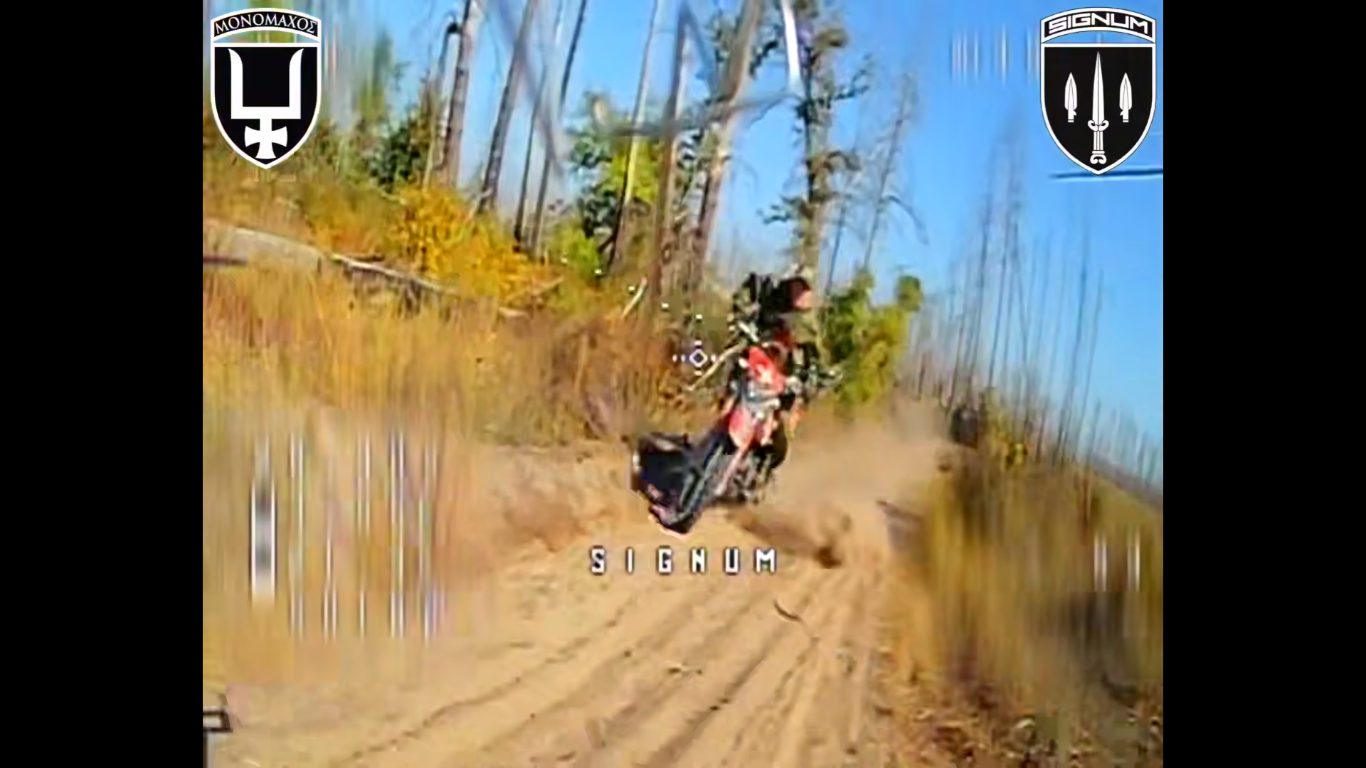 Бійці батальйону Signum 53-ї окремої механізованої бригади імені князя Володимира Мономаха уразили ворожого бійця, який вирішив прориватися до наших позицій на червоному ендуро Sycmcc 300.