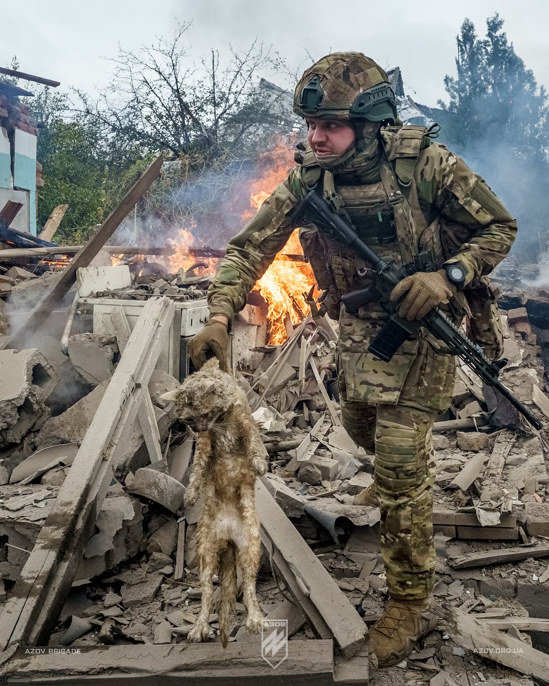 У порятунку брали участь стрільці-зенітники підрозділу ППО 12-ї бригади «Азов» та бійці «Люті». Разом із жінкою військові врятували і її домашнього улюбленця.