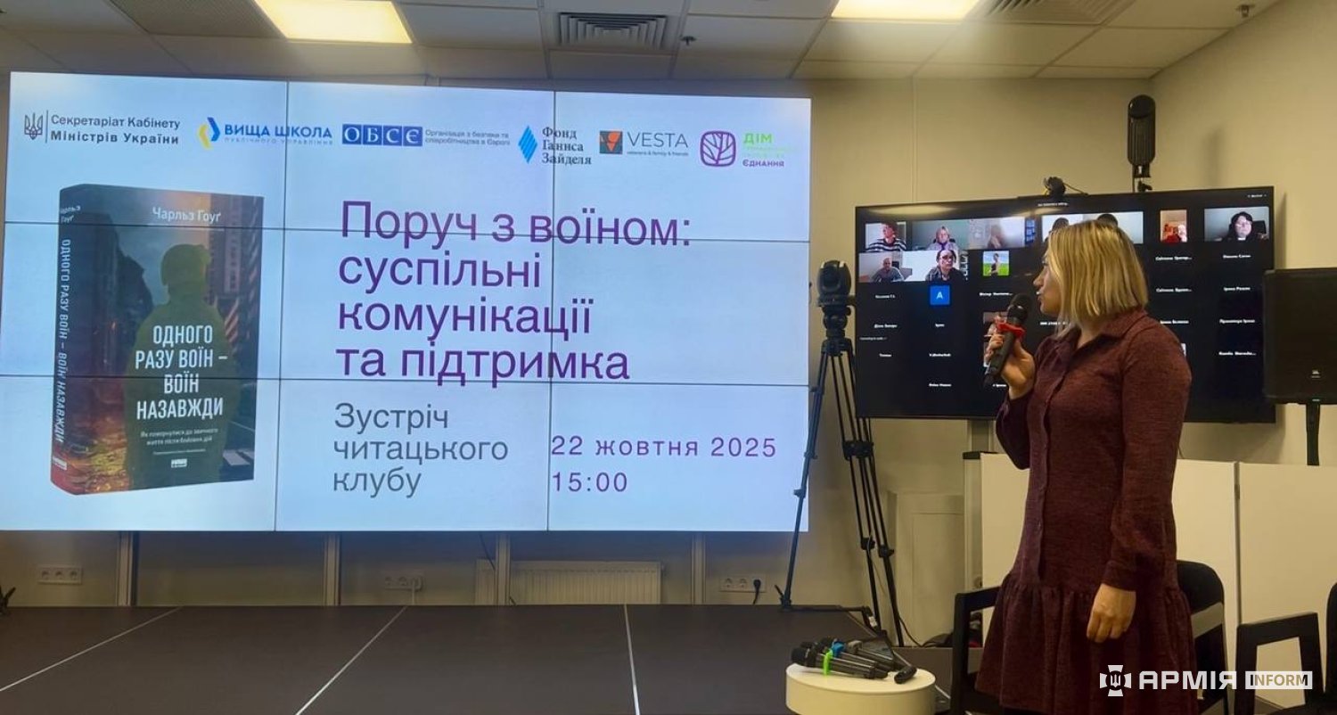 У Києві в Домі громадянського суспільства відбулася зустріч у форматі читацького клубу на тему: “Поруч з воїном: суспільні комунікації та підтримка”. В основі обговорення була книга Чарльза Гоуга “Одного разу воїн – воїн назавжди”.