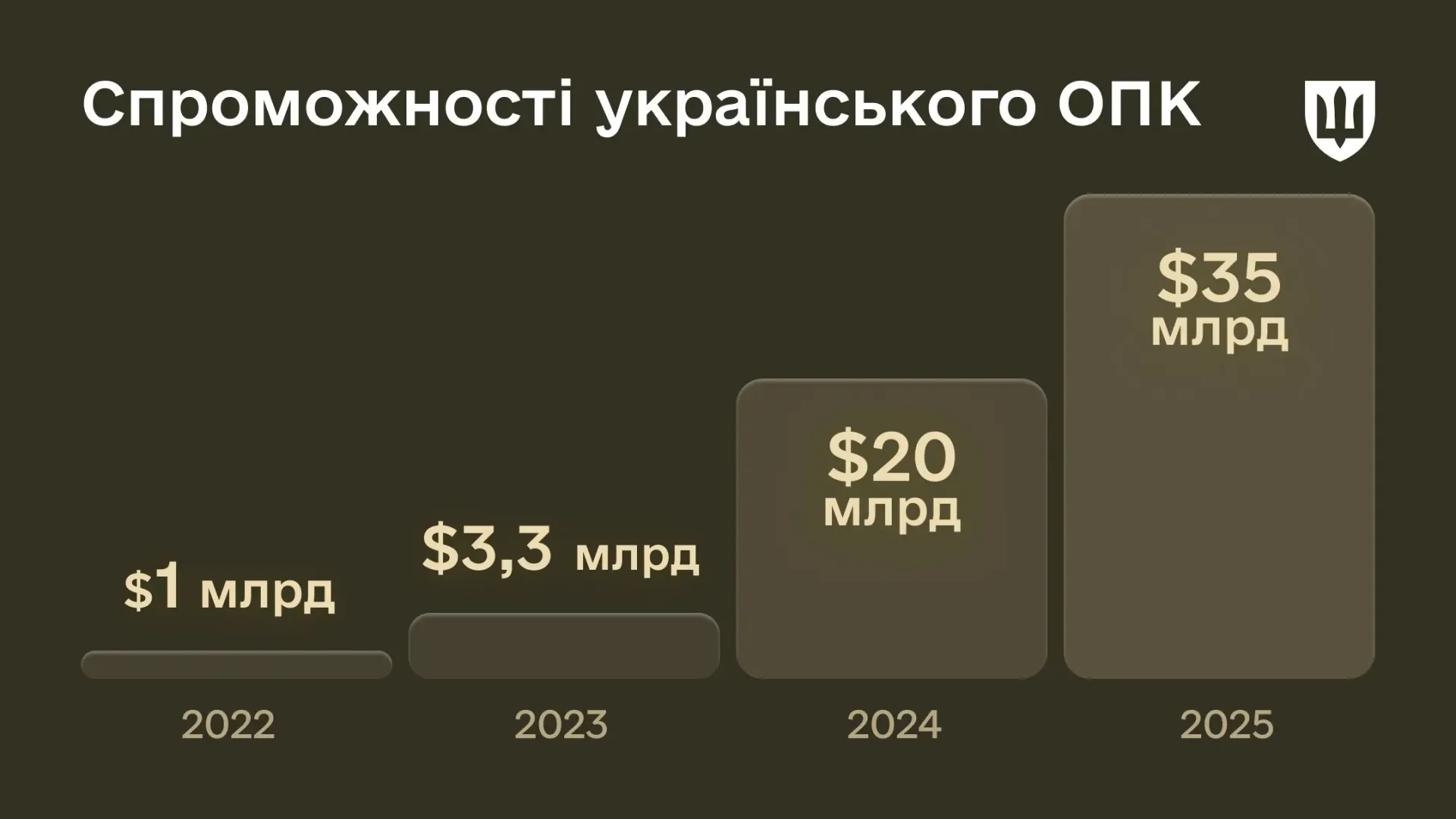 За три роки виробничі спроможності українського ОПК зросли у 35 разів — від $1 млрд у 2022 році до $35 млрд у 2025-му. Такої динаміки не може продемонструвати жодна інша країна світу.