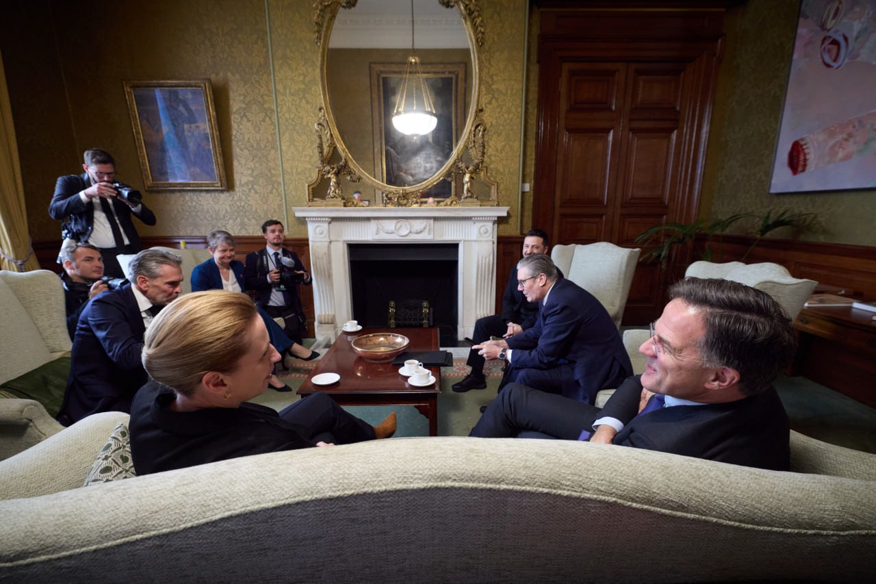 Так, під час свого візиту до Великої Британії Володимир Зеленський взяв участь у переговорах з її прем’єр-міністром Кіром Стармером, главами урядів Данії Метте Фредеріксен та Нідерландів Діком Схоофом, а також генеральним секретарем НАТО Марком Рютте та президентом Франції Емманюелем Макроном, який доєднався до них онлайн.