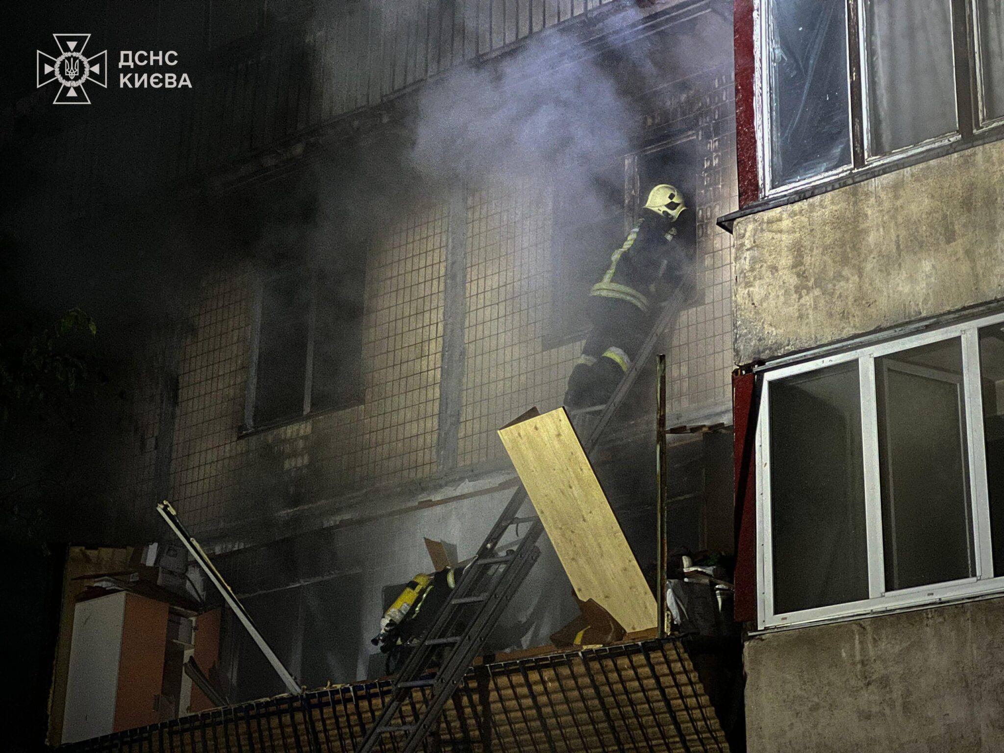 У Деснянському районі уламки впали на дев’ятиповерховий житловий будинок. Сталося загоряння декількох квартир. Також пошкоджені вікна та двері квартир у житловому будинку за іншою адресою.