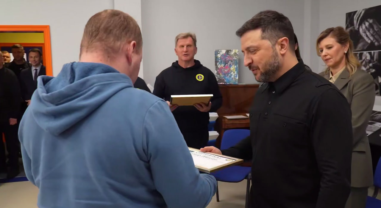 Президент України Володимир Зеленський разом із Першою леді Оленою Зеленською відвідали центр Trinity Hub — місце, де українські захисники, які втратили зір, проходять реабілітацію та адаптацію.