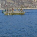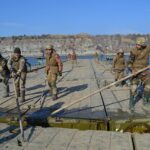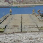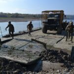 Військовослужбовці 211-ї понтонно-мостової бригади Сил підтримки ЗСУ відпрацьовують наведення понтонно-мостових переправ, готуючись до виконання завдань у бойових умовах.