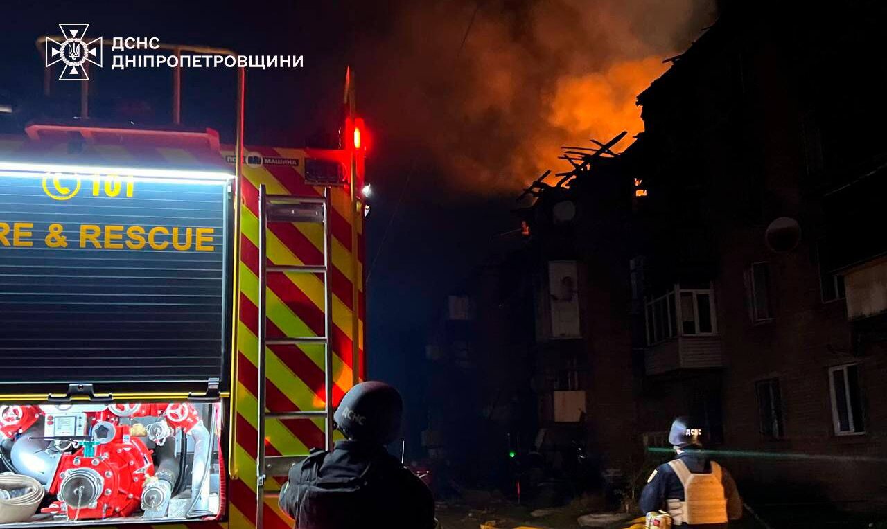 Унаслідок ворожого удару по місту Кам’янське Дніпропетровської області виникли пожежі, є постраждалі серед місцевого населення.