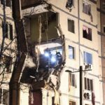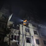Як зазначається, один з ворожих ударних дронів влучив у дев’ятиповерховий житловий будинок, що призвело до руйнування квартир з 4-го по 6-й поверхи.