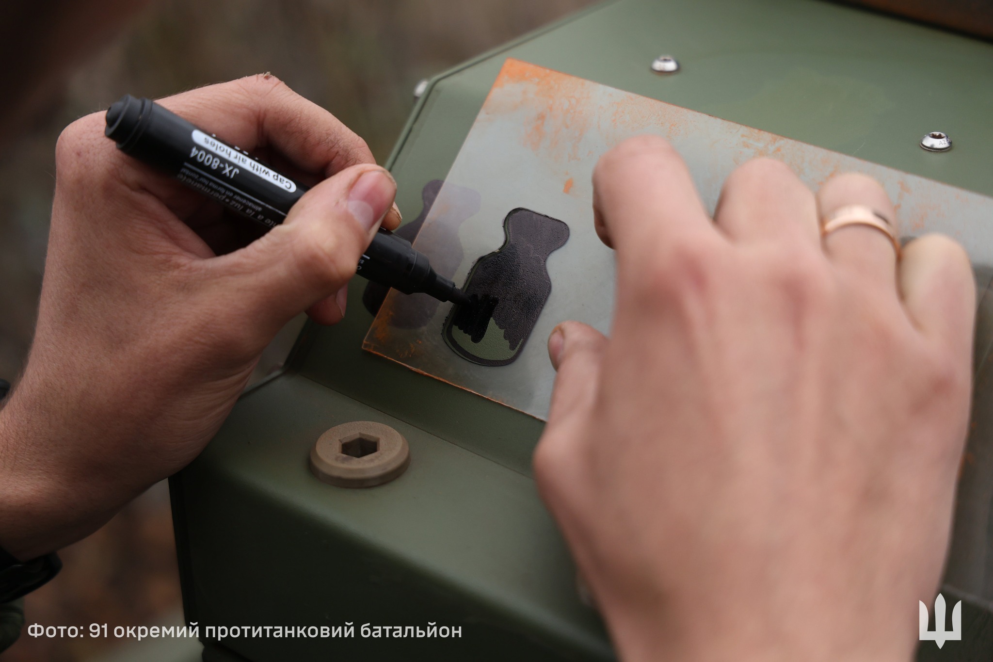 На корпусі наземного роботизованого комплексу «Робокоп» зі взводу НРК намалювали другу «гирку» — за другу тонну доставлених вантажів.