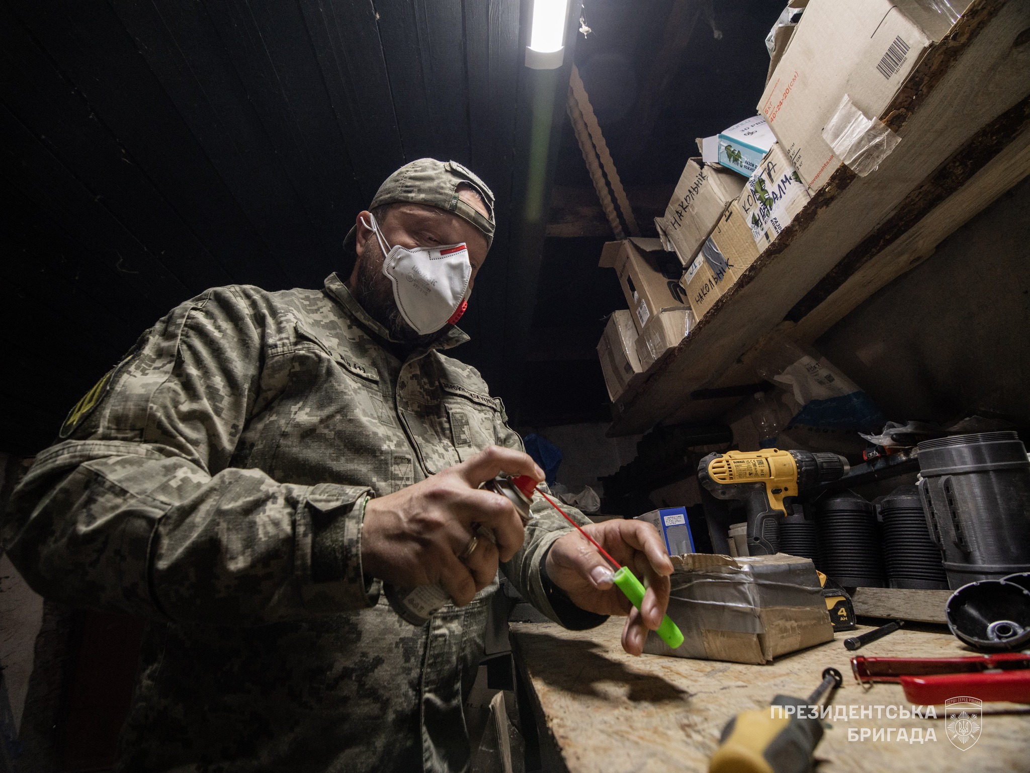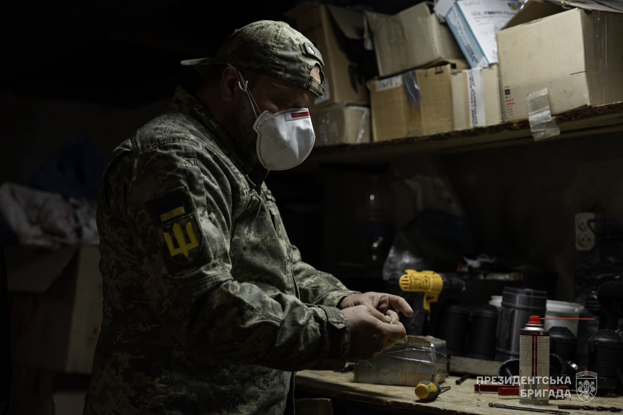 47-річний Євген із позивним «Бабуля» виготовляє боєприпаси для дронів у взводі інженерно-технічного забезпечення батальйону безпілотних систем Президентської бригади. Його історію опублікували на сторінці Окремої президентської бригади імені гетьмана Богдана Хмельницького.