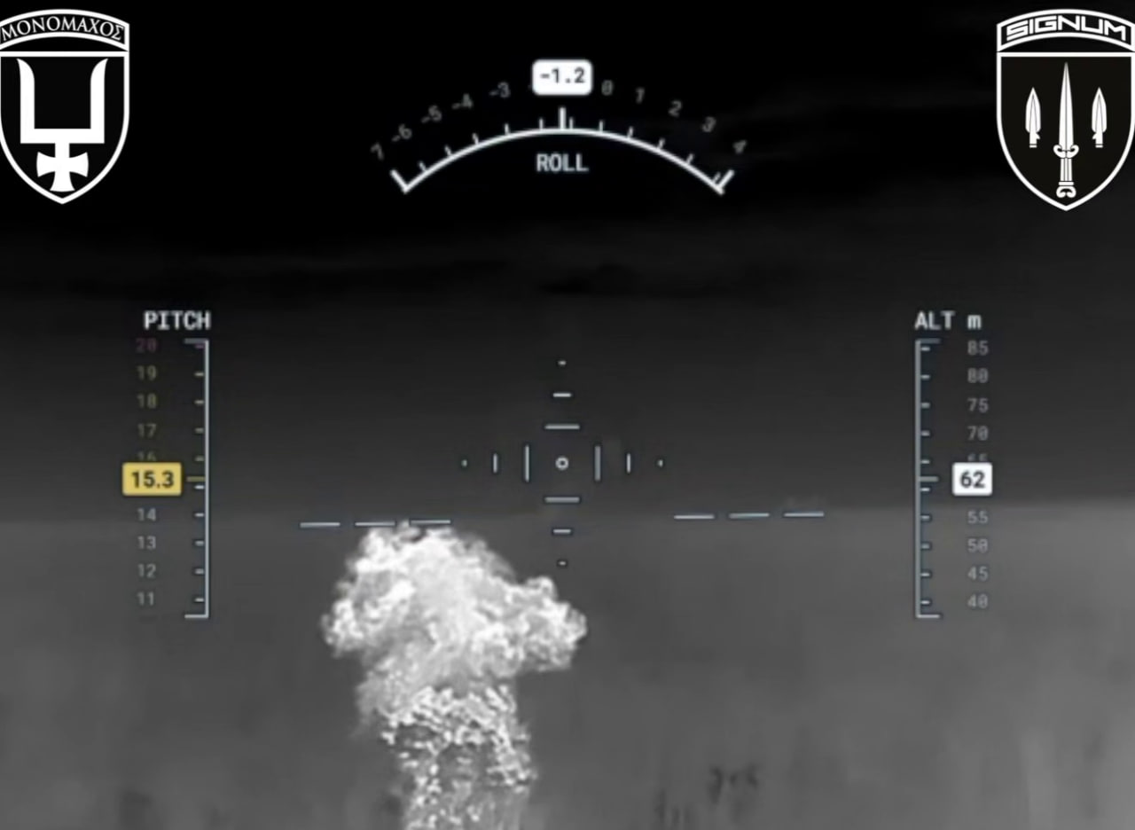 Як повідомляла АрміяInform, батальйон Signum показав спільну роботу артилерії та FPV-дронів по скупченню ворога. На відео — момент, коли снаряд влучає в палаючий будинок, де ще перебували окупанти.