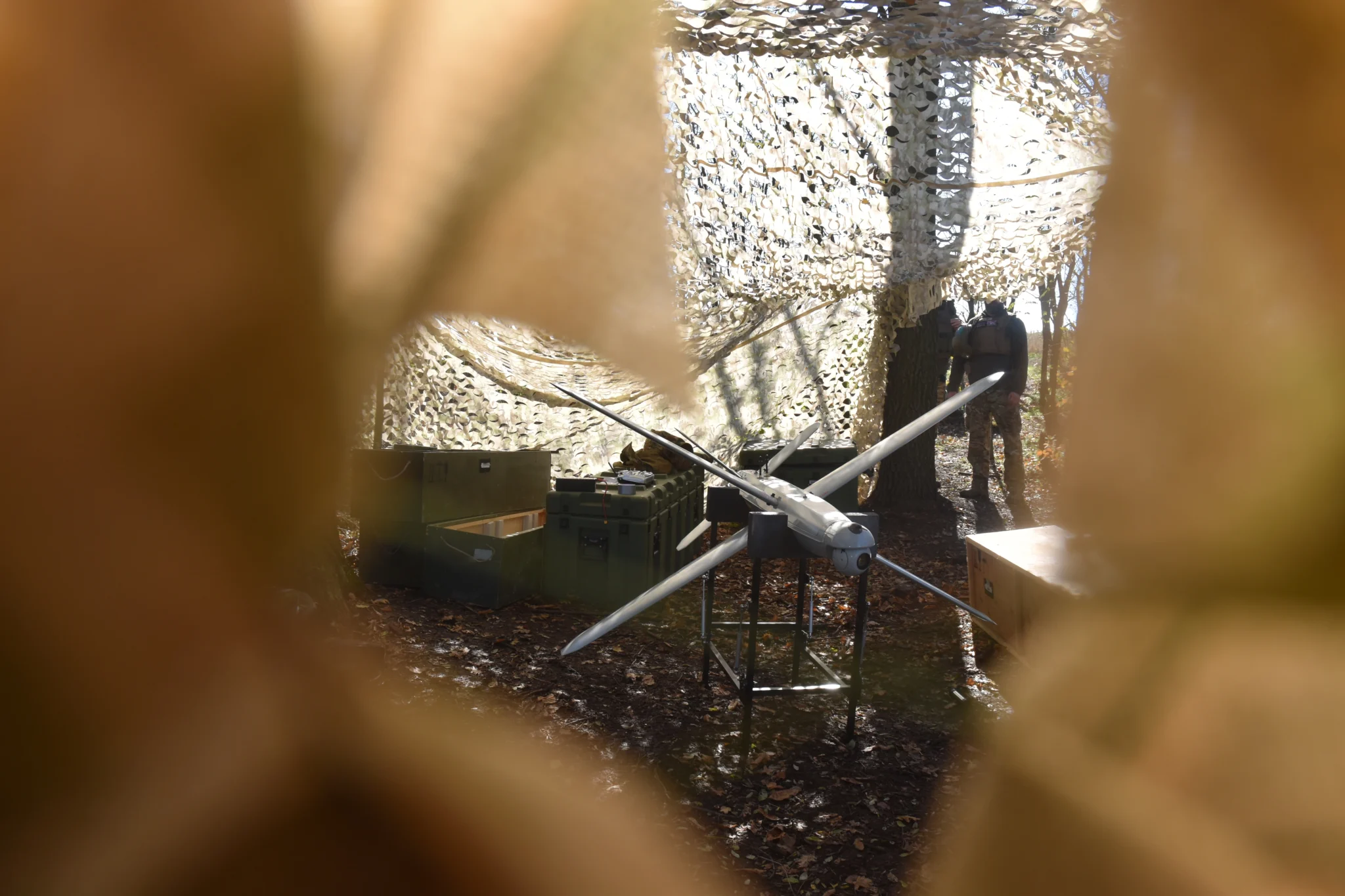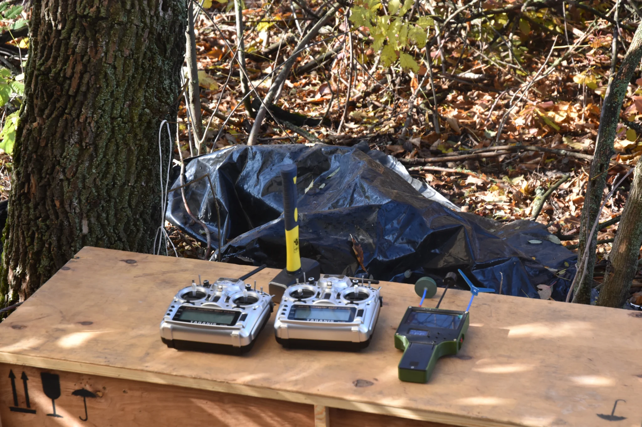 Наша машина заїздить в одну зі спеціально підготовлених схованок. Вивантажуємося і йдемо вздовж посадки. У степу саме ці вузенькі смуги дерев чи не єдине місце, де можна сховатися. Та посадки зазвичай добряче населені. Ось і тут бачимо серед кущів та дерев то окопи, то бійців різних підрозділів. За деякий час заходимо в посадку. Бачимо великі ящики з БПЛА, накриті маскувальною сіткою. До нас виходять пілоти. Їх тут шестеро, вони виїхали на добове чергування у спеціально підготовленому для цього бліндажі, який так вміло виритий між деревами, що навіть впритул можна не побачити вхід до нього.