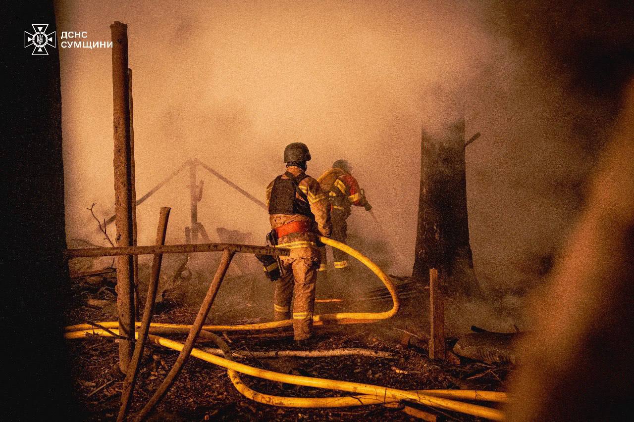 «На Сумщині ворог завдав удару по житловому сектору. Попередньо, травмовано одну людину. Пошкоджень та руйнувань зазнав приватний сектор, та нежитлове приміщення. Спалахнула масштабна пожежа, яку рятувальники ліквідували», — йдеться в повідомленні.