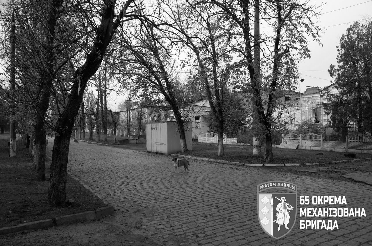 «Ті самі обезлюднілі вулиці, ті самі розбиті будинки з порожніми „очницями“ вибитих вікон, контужені бездомні собаки й поодинокі місцеві жителі…» — описують бійці.