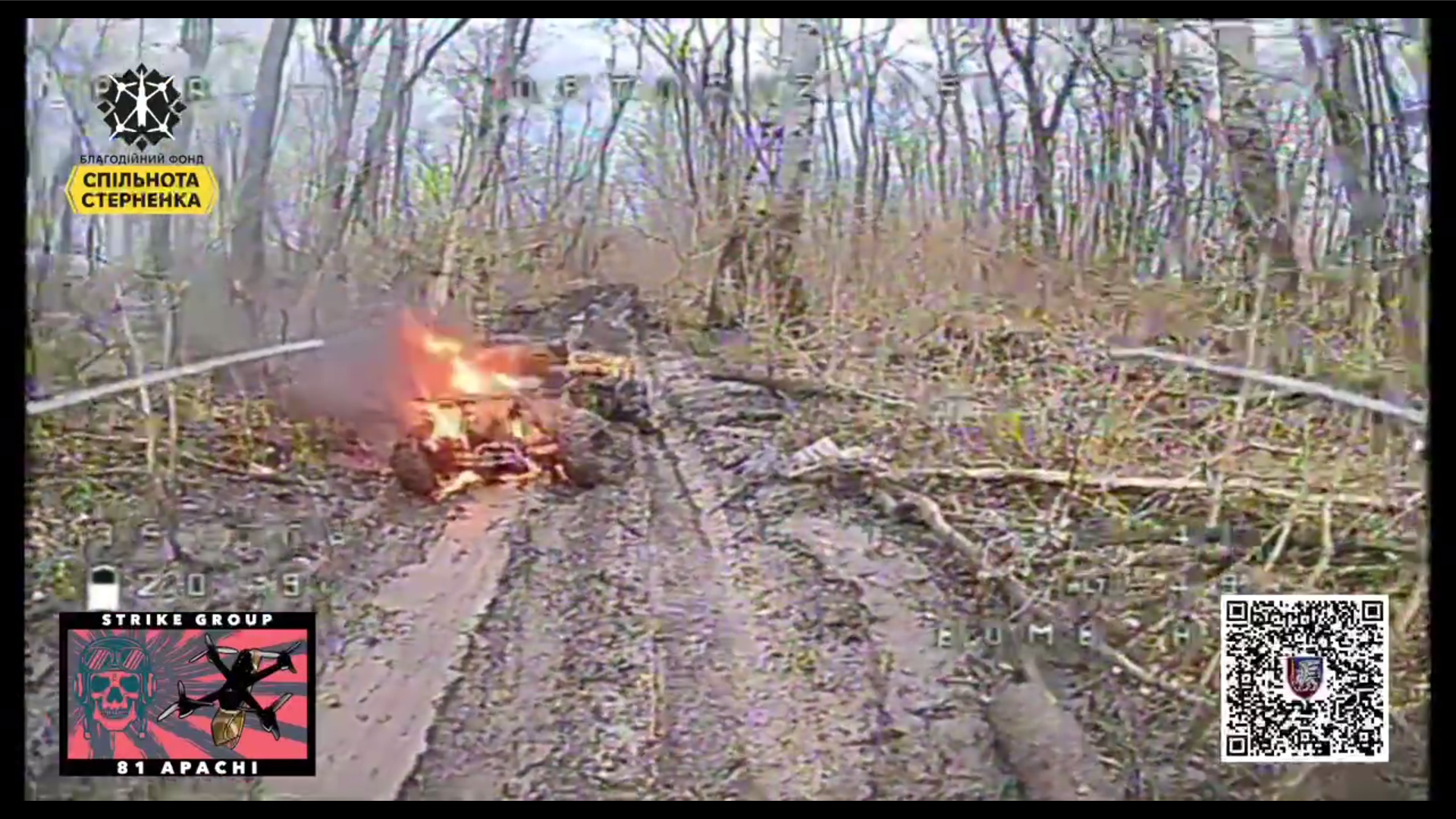 Наші пілоти змогли уразити пару російських квадроциклів. Один прямо на вузькій лісовій дорозі, а другий у схованці.