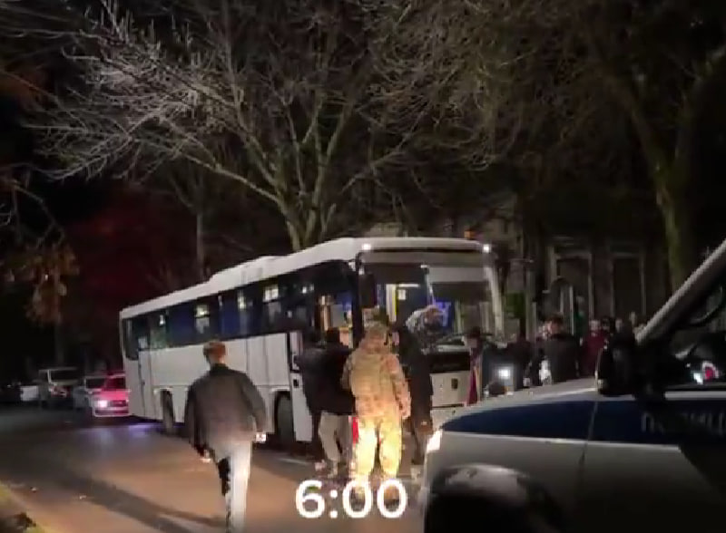 На кадрах видно, як людей виводять під наглядом озброєних російських військових і відправляють до автобусу.