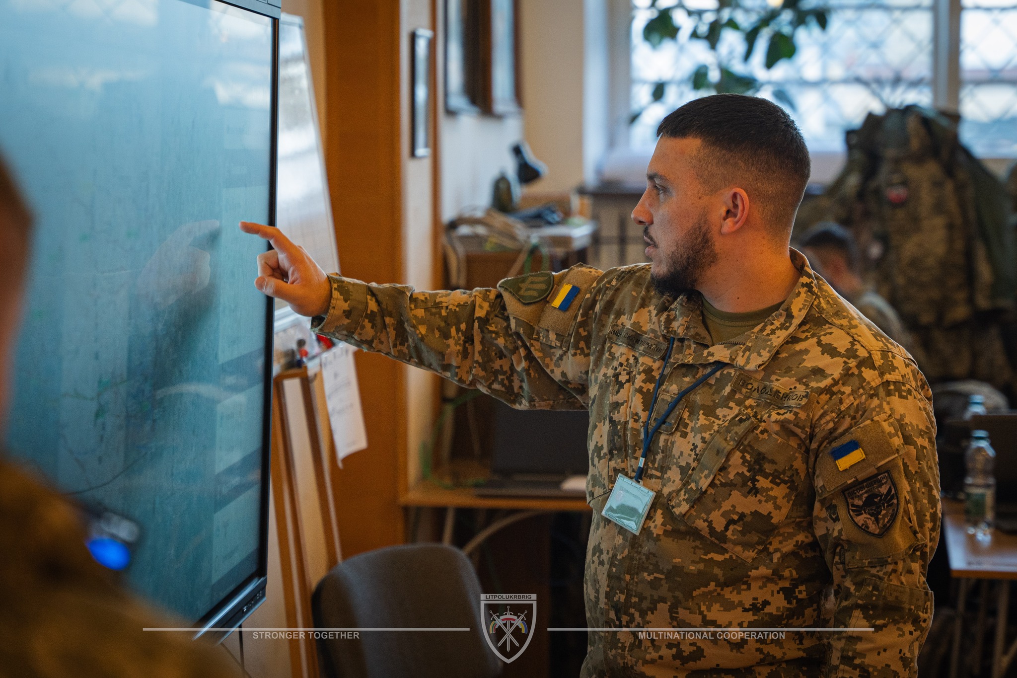 На першому етапі учасники навчання взяли участь у фазі планування оборонної операції згідно з тактичним процесом планування для сухопутних підрозділів (TPLF): доповідь замислу старшому начальнику та вироблення бойового наказу на ведення оборонної операції (OPORD), відпрацювання взаємодії з підрозділами багатонаціональної бригади.