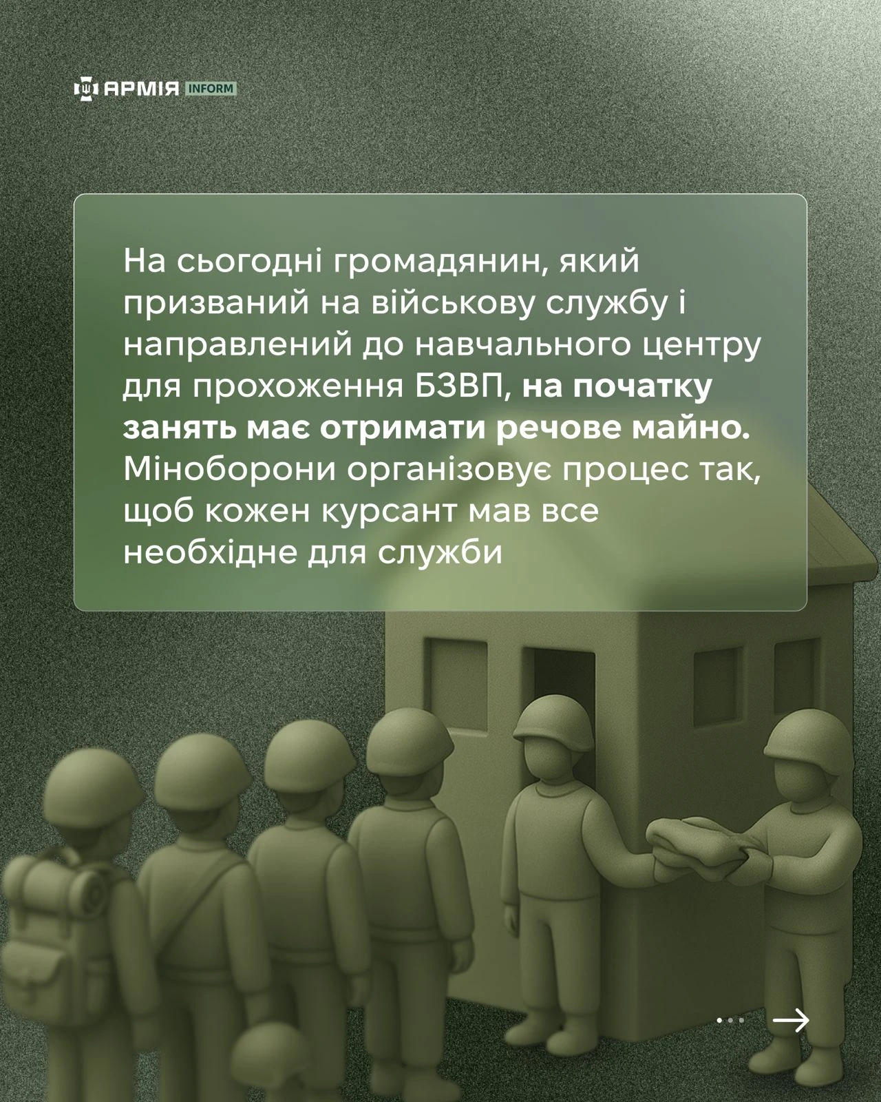 На сьогодні громадянин, який призваний на військову службу і направлений до навчального центру для проходження БЗВП, на початку занять має отримати речове майно.