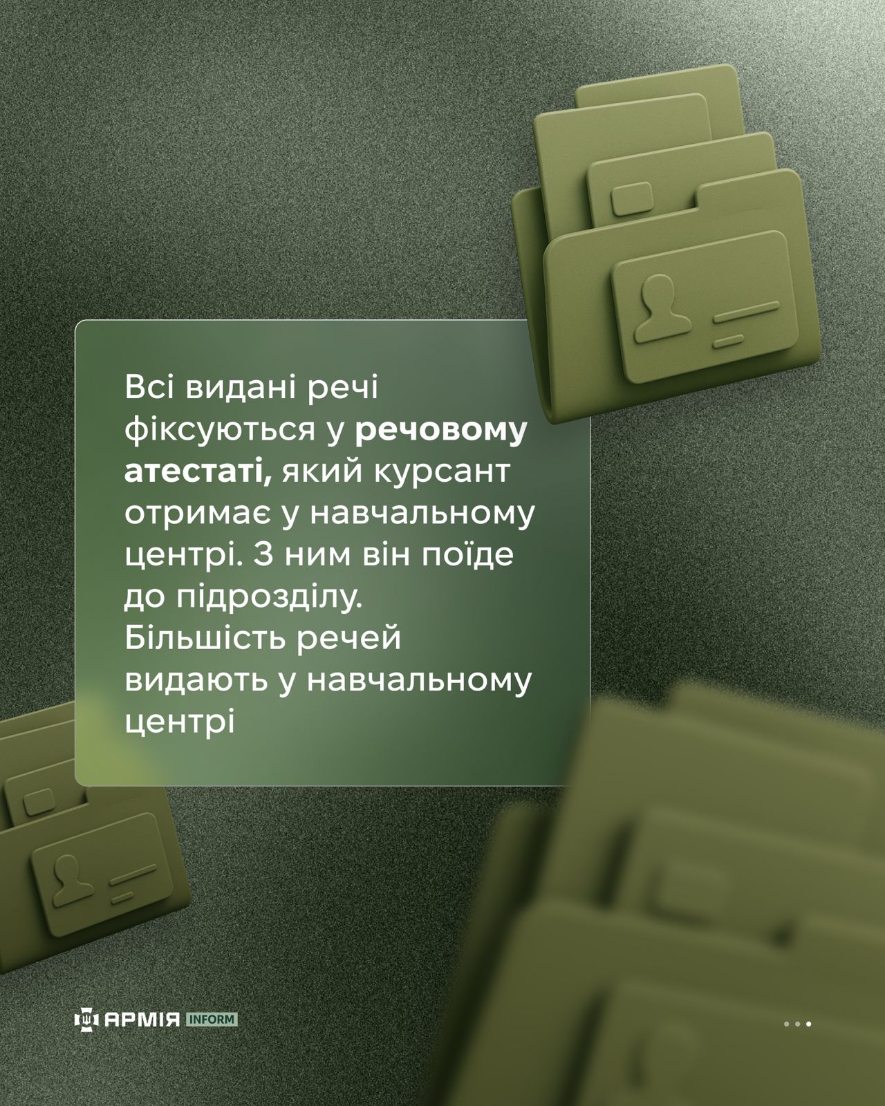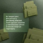 Усі видані речі фіксуються у речовому атестаті, який курсант отримає у навчальному центрі. З ним він поїде до підрозділу.
